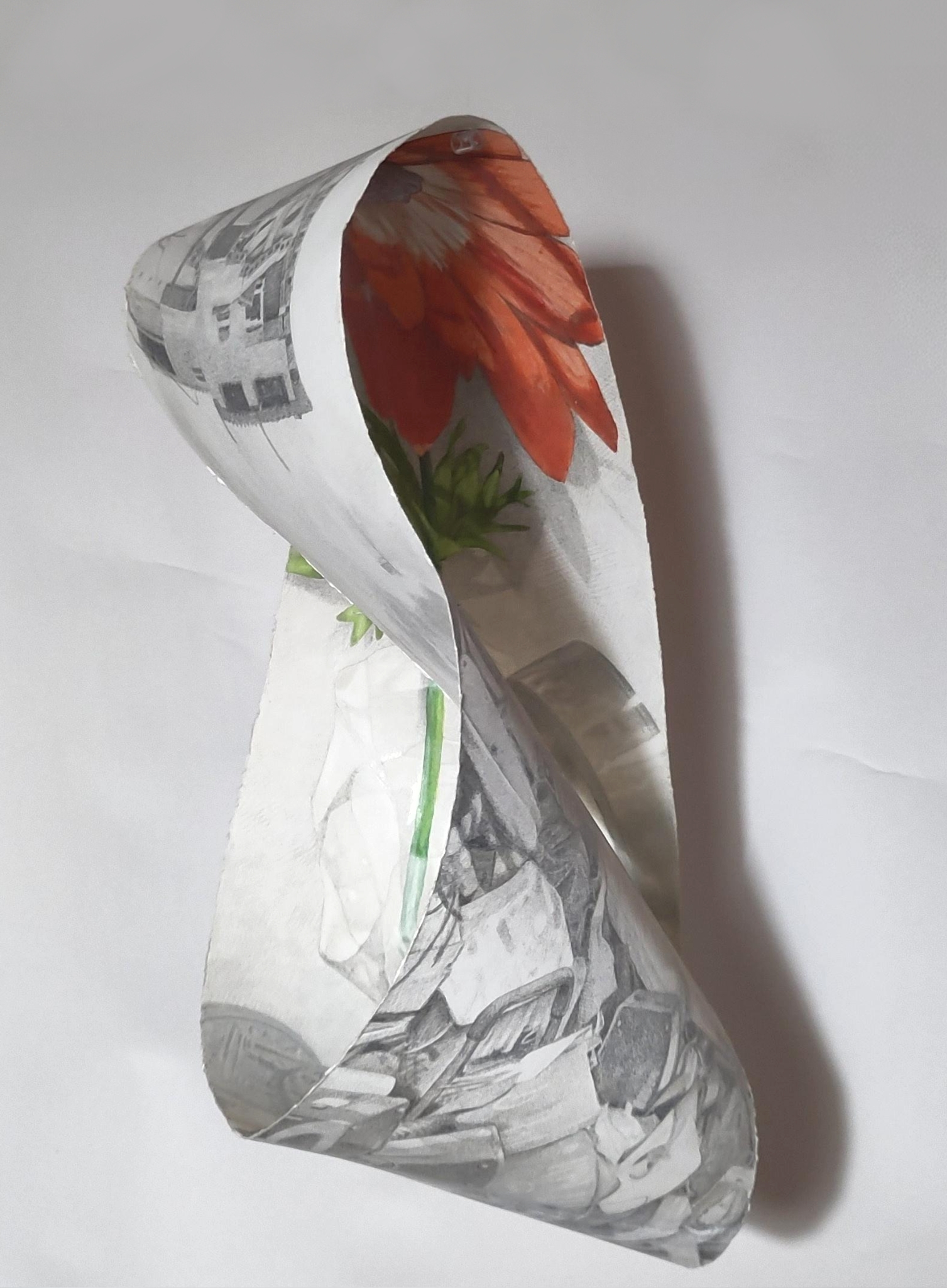 home to four millennia of visitors (2022) coloured pencil, silver, aluminium, drawing on paper, 70x50cm