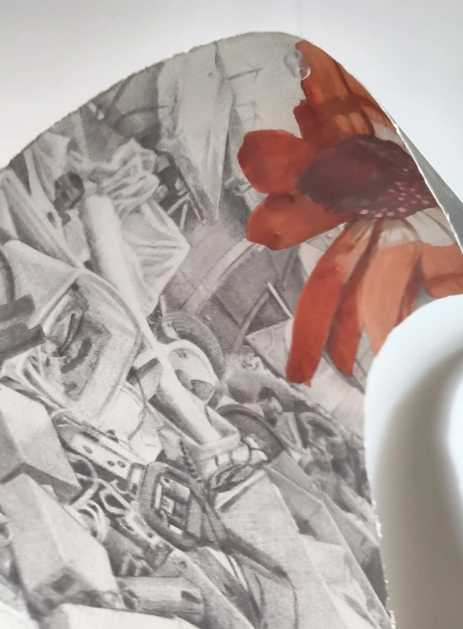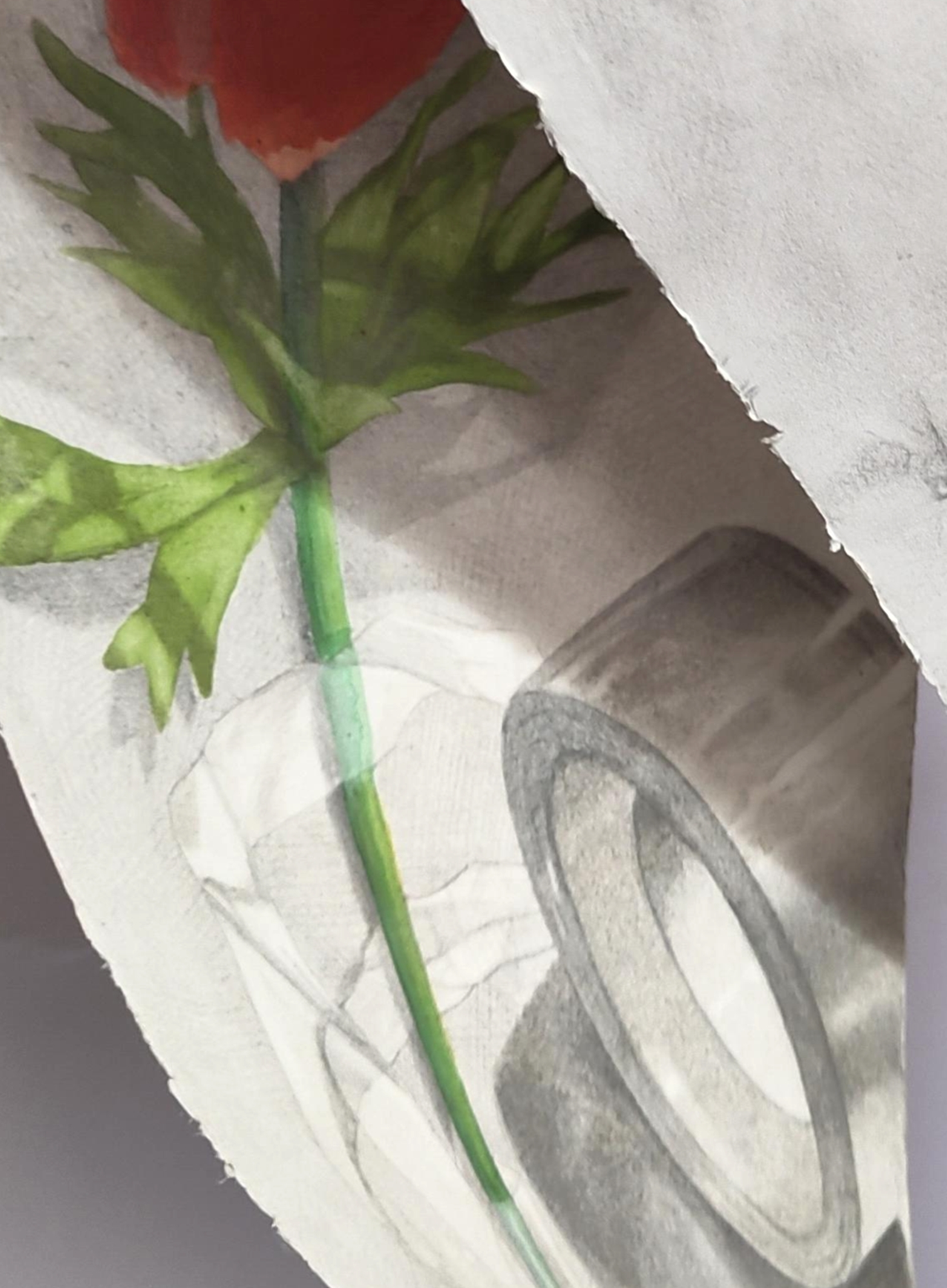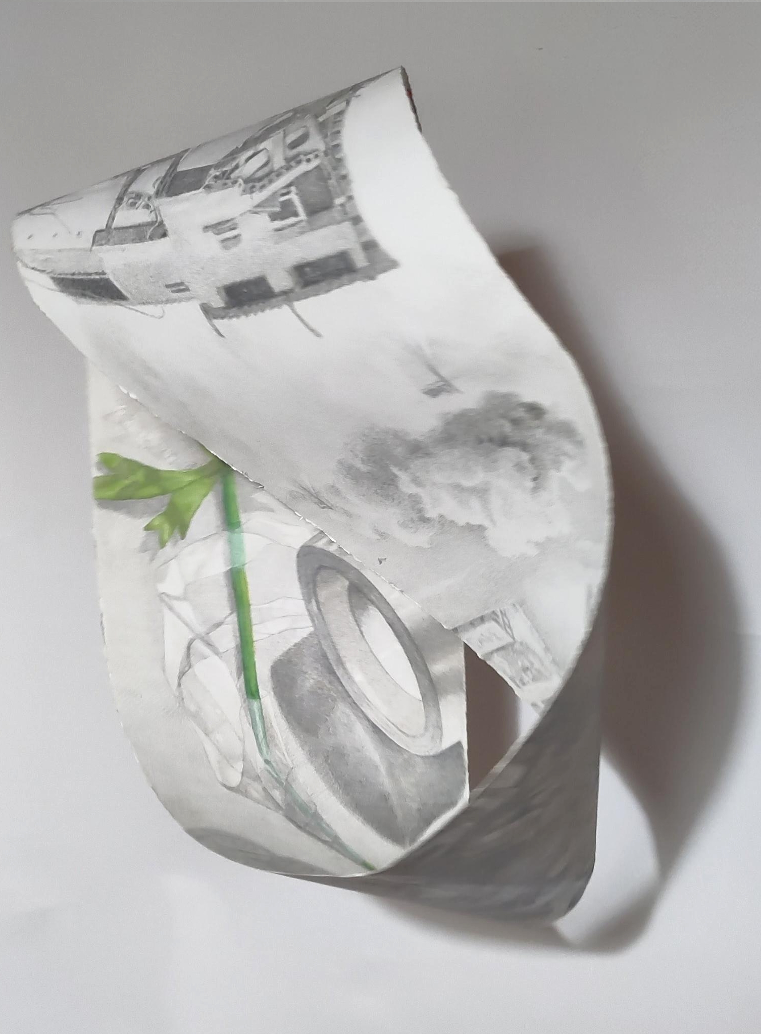 can I heal an anemone with scotch tape (2025) silverpoint and aquarelle on paper; photograph of stairs by Bisan Owda, Gaza. * private collection, Hilversum